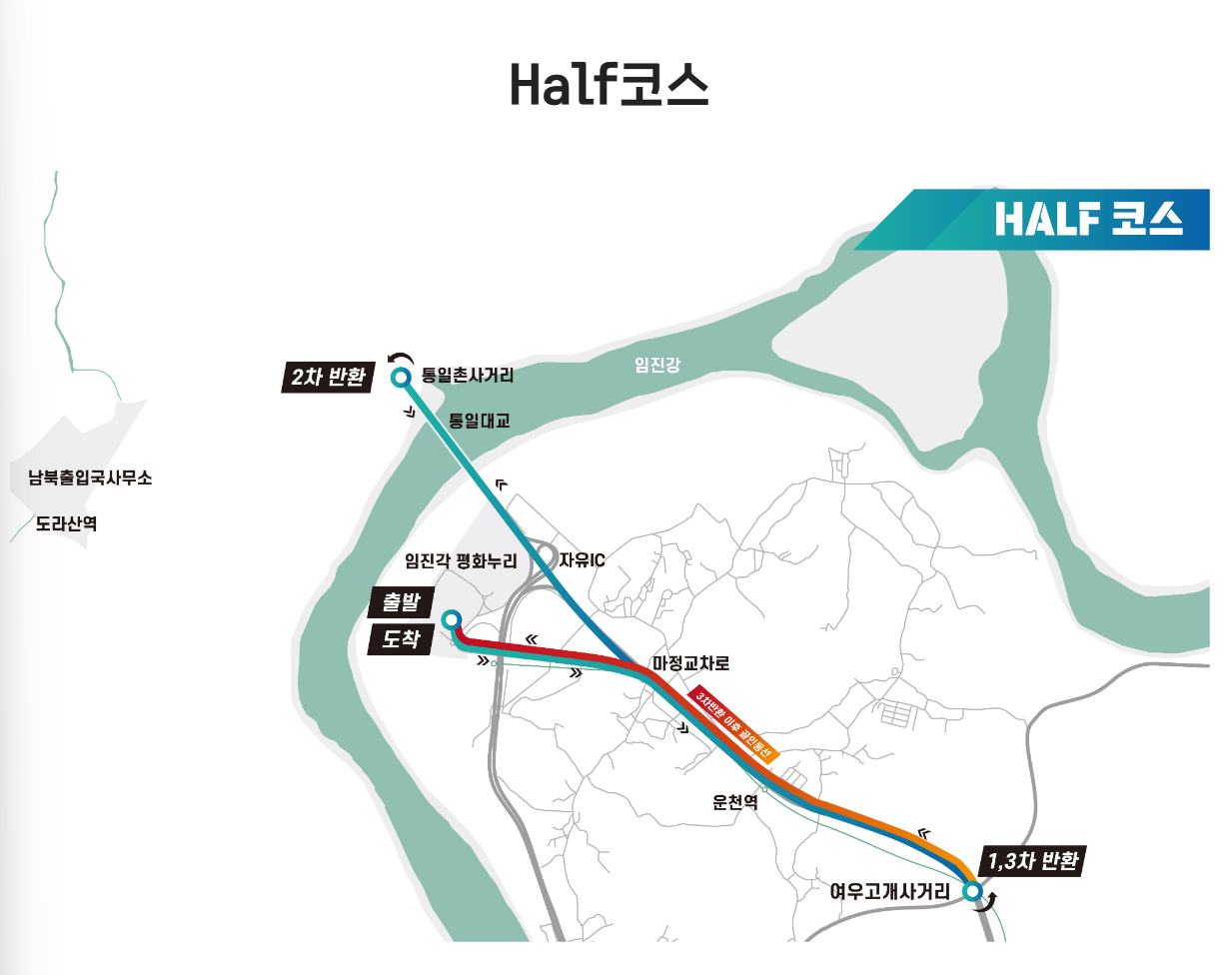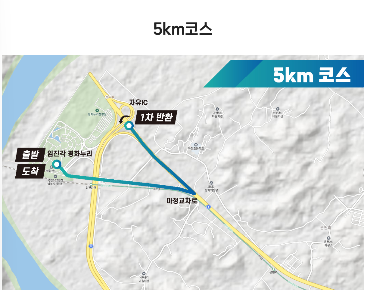* '통일대교 ~ 통일촌사거리' 구간은 민간인통제구역으로 군의 작전 상황 발생 시 코스가 조정될 수 있습니다.