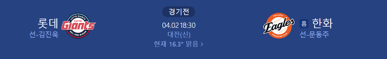 그럼 이상으로 4월 2일 한화이글스 VS 롯데자이언츠 프리뷰 포스팅 글을 마무리 합니다!!