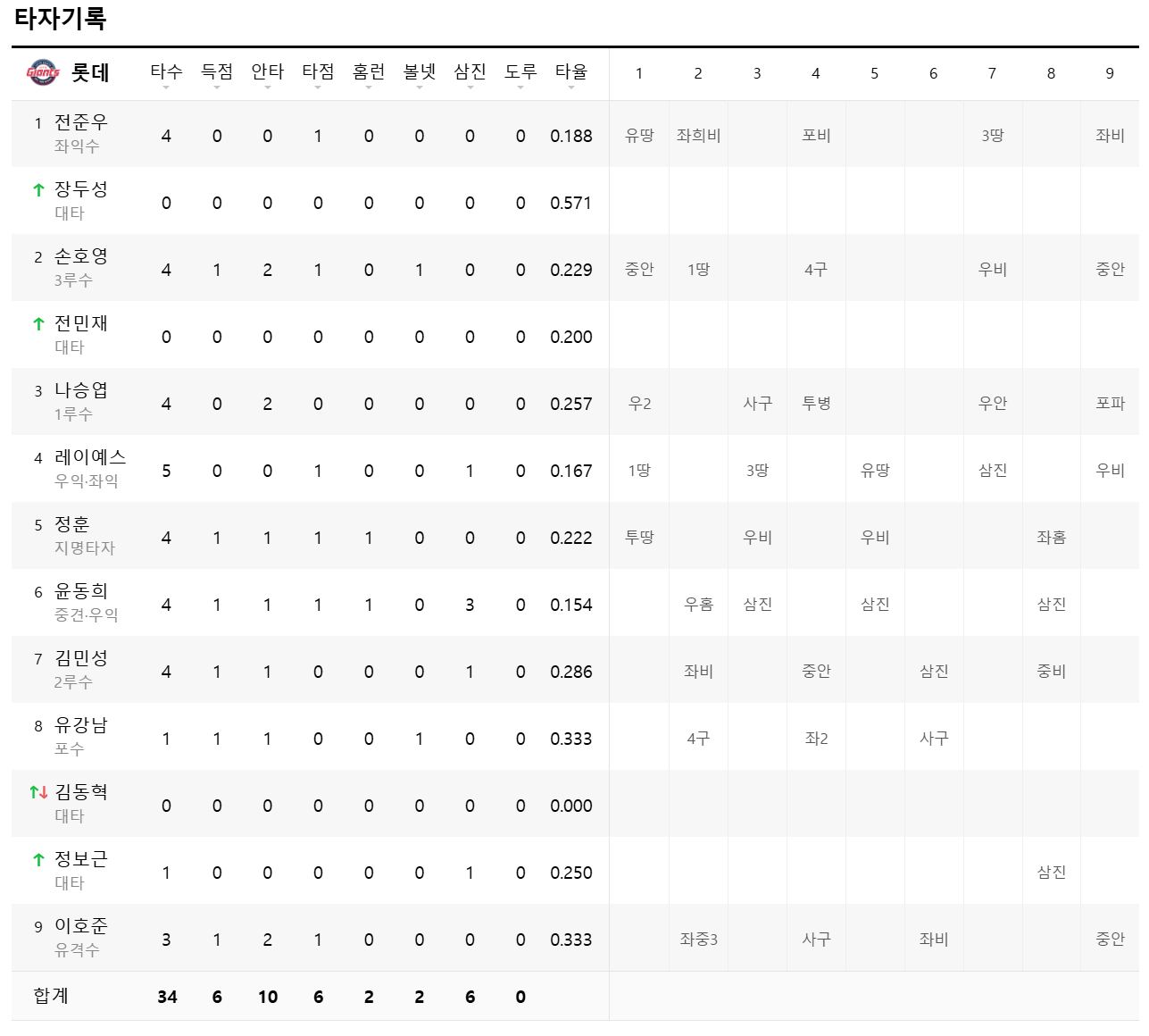 결승타 : 레이예스(롯데) (1회 1사 2,3루서 1루수 땅볼)