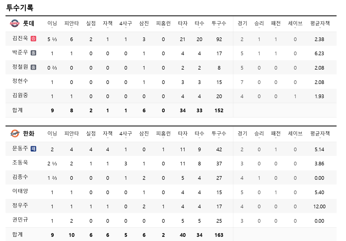 문동주 선수의 첫 승을 기대했었는데 많이 아쉬운 경기 내용이랑 결과이네요ㅠㅠ