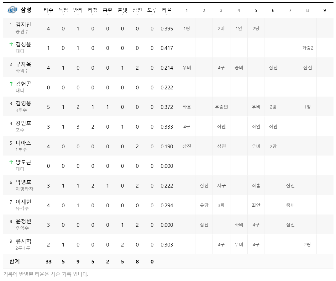 김영웅 솔로포, 박병호 투런, 강민호 적시타