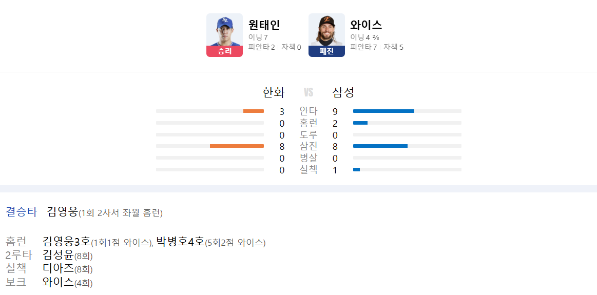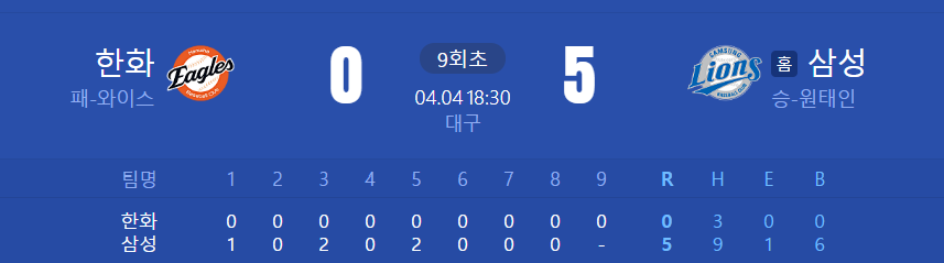 이상으로 4월 4일 한화이글스 VS 삼성라이온즈 경기 리뷰 포스팅 글을 마칩니다!!