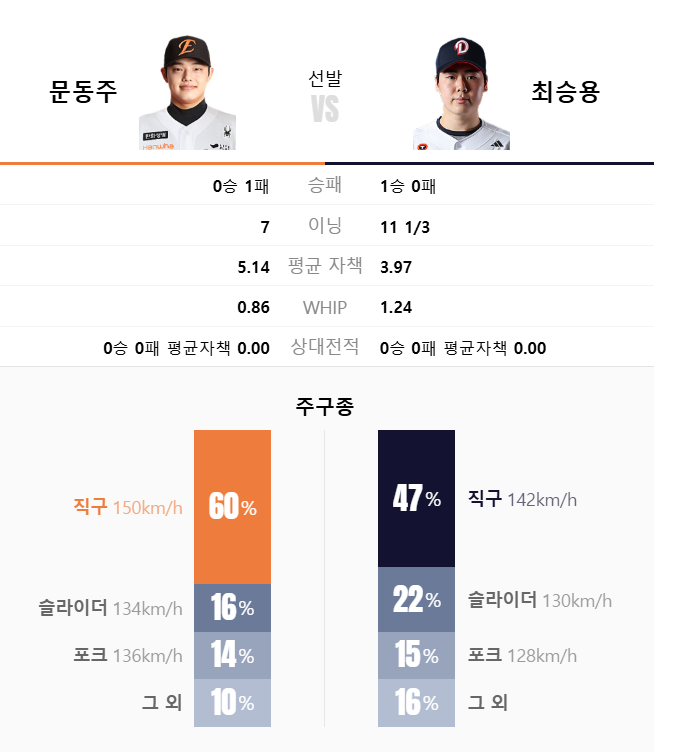그럼 바로 한화이글스 VS 두산베어스 전력분석, 승부예측, 선발투수 분석 들어갑니다!!