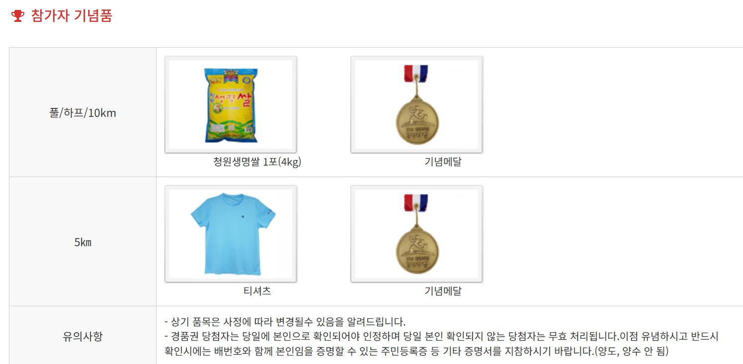 풀코스/하프/10k : 청원생명쌀 1포(4kg), 기념메달