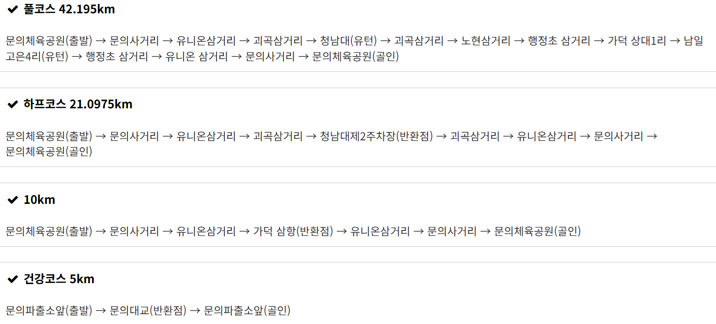 참가종목 : 풀코스(42.195km) / 하프코스(21.0975km) / 단축코스(10km) / 건강코스(5km)