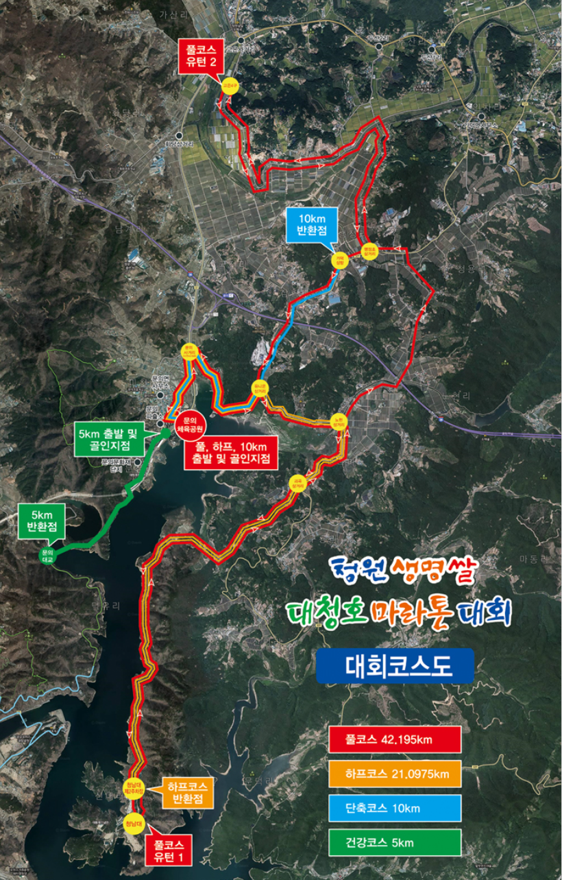 하반기 풀코스 대회 중에서 춘천만큼이나 유명한 대회로 대청호를 보고 뛰는 코스가 러너분들이라면