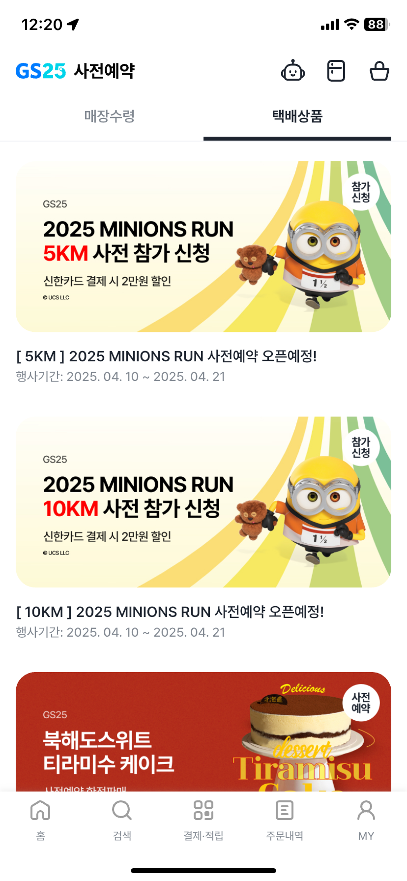 2) 편으점 사전 예약 클릭 → 택배상품 클릭 → 미니언즈 마라톤 참가 신청