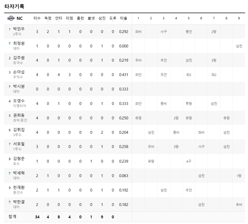 대전에서 열린 NC 다이노스와의 주말 3연전 첫 경기에서,