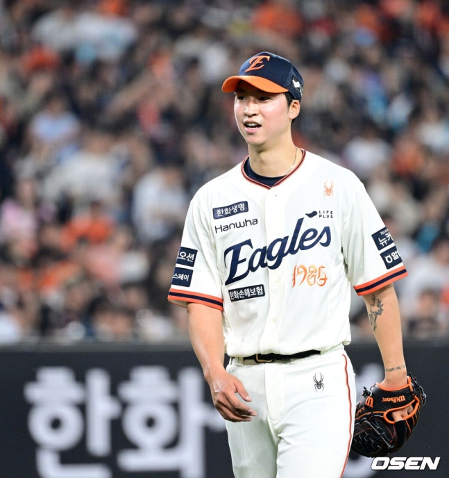 오늘 선발로 나와서 5이닝 4실점 기록하며 한화 이적 후 첫 승!