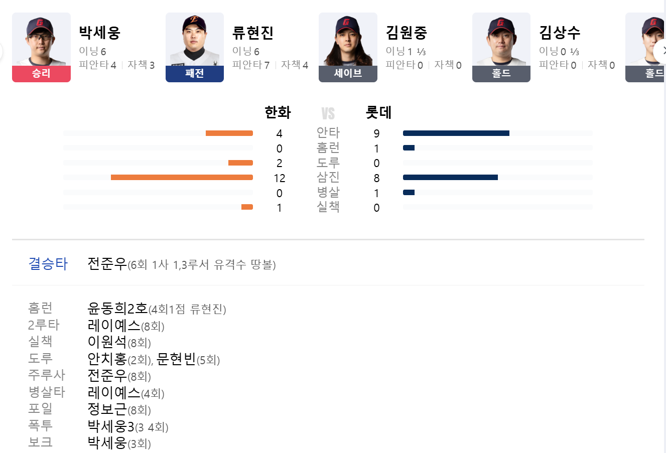 이상으로 2025년 4월 24일 KBO 한화이글스 VS 롯데자이언츠 경기 리뷰 포스팅 글을 마무리 합니다!