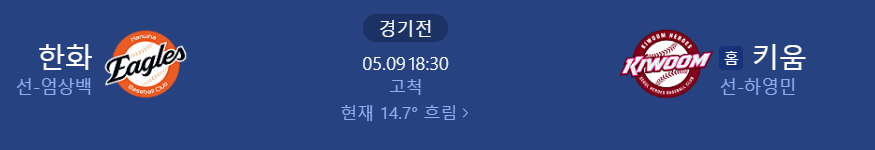 그럼 이상으로 5월 9일 KBO 한화 이글스 VS 키움 히어로즈 프리뷰 포스팅 글을 마무리 합니다!!