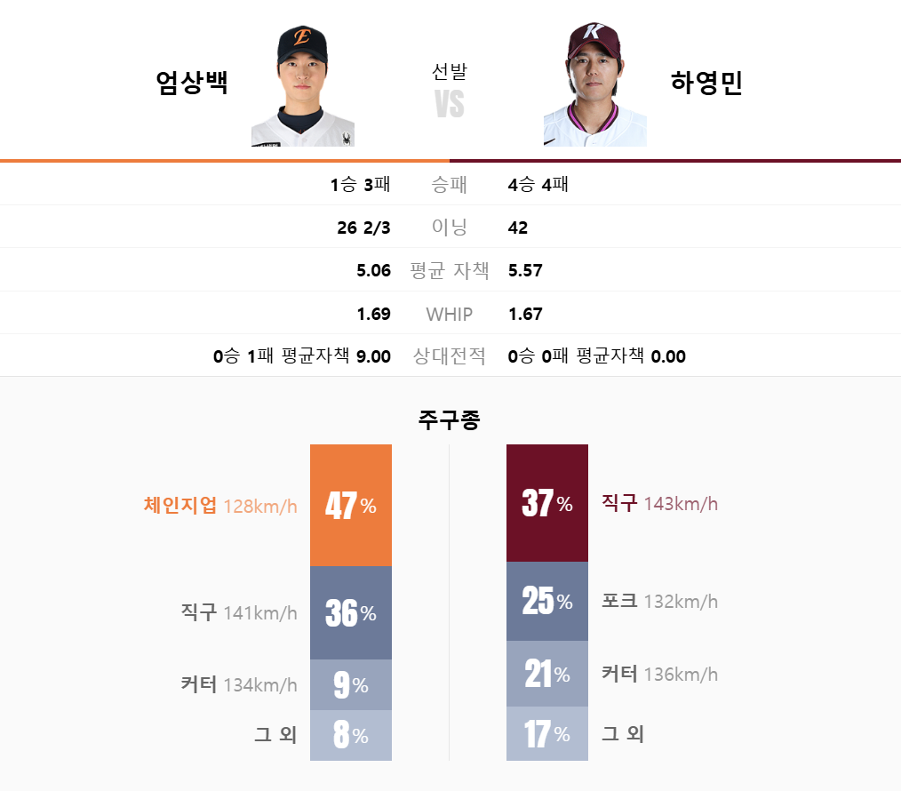 선발 투수 간 데이터는 키움 히어로즈가 우세한 듯 보이나 한화 이글스의 최근 상승세와 선발투수들의 안정적인 투구