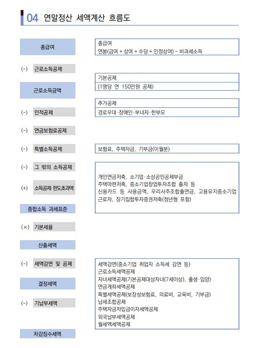② 소득공제 : 인적공제, 연금보험료 공제, 특별소득공제, 그 밖의 소득공제로 항목은 크게 4가지로 나뉜다.