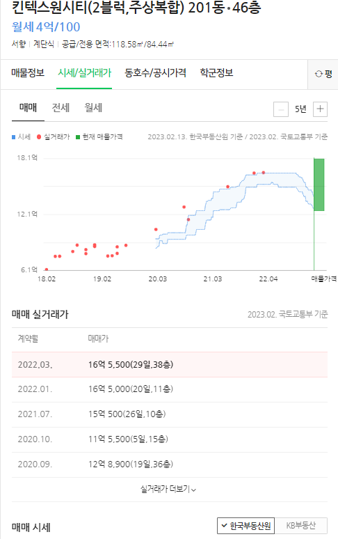 위 일산 킨텍스원시티 아파트의 경우 21년 매매가 15억대 , 22년 16억대 , 23년 16억대로 상승 흐름이라고 볼 수 없죠.