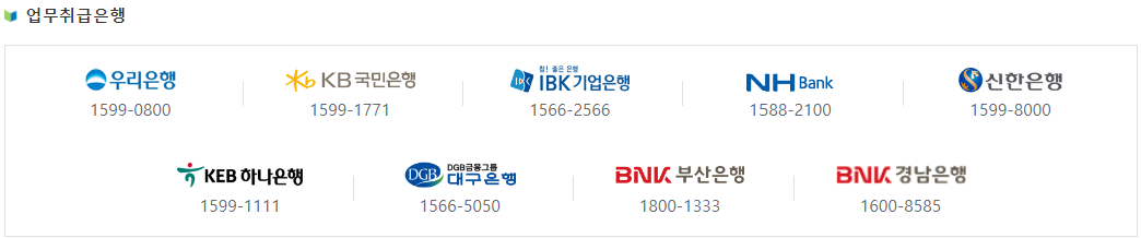 ● 은행에 방문 후 신청 진행하시면 되고 가입 가능한 은행은 아래 사진에 나와있어요.