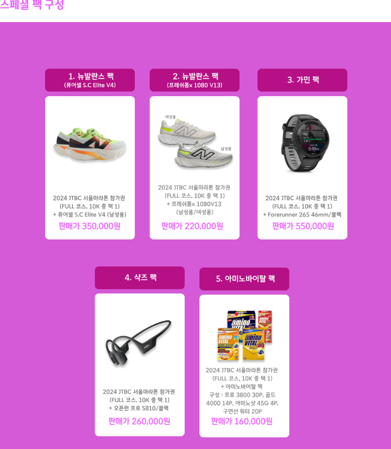 단, 한 번의 기회! JTBC 서울마라톤 참가자에게 최상의 혜택을 드리기 위해 참가권과 스폰서쉽 브랜드들의 대표 상품을