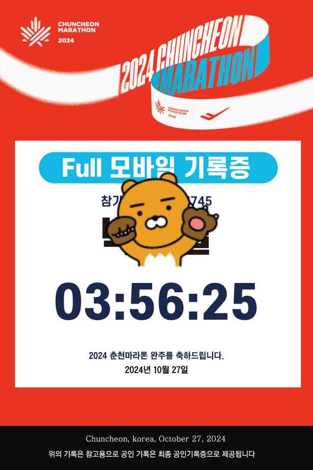 오늘은 제가 올해 도전한 첫 풀코스 대회 춘천마라톤 후기를 써볼까 합니다!!!