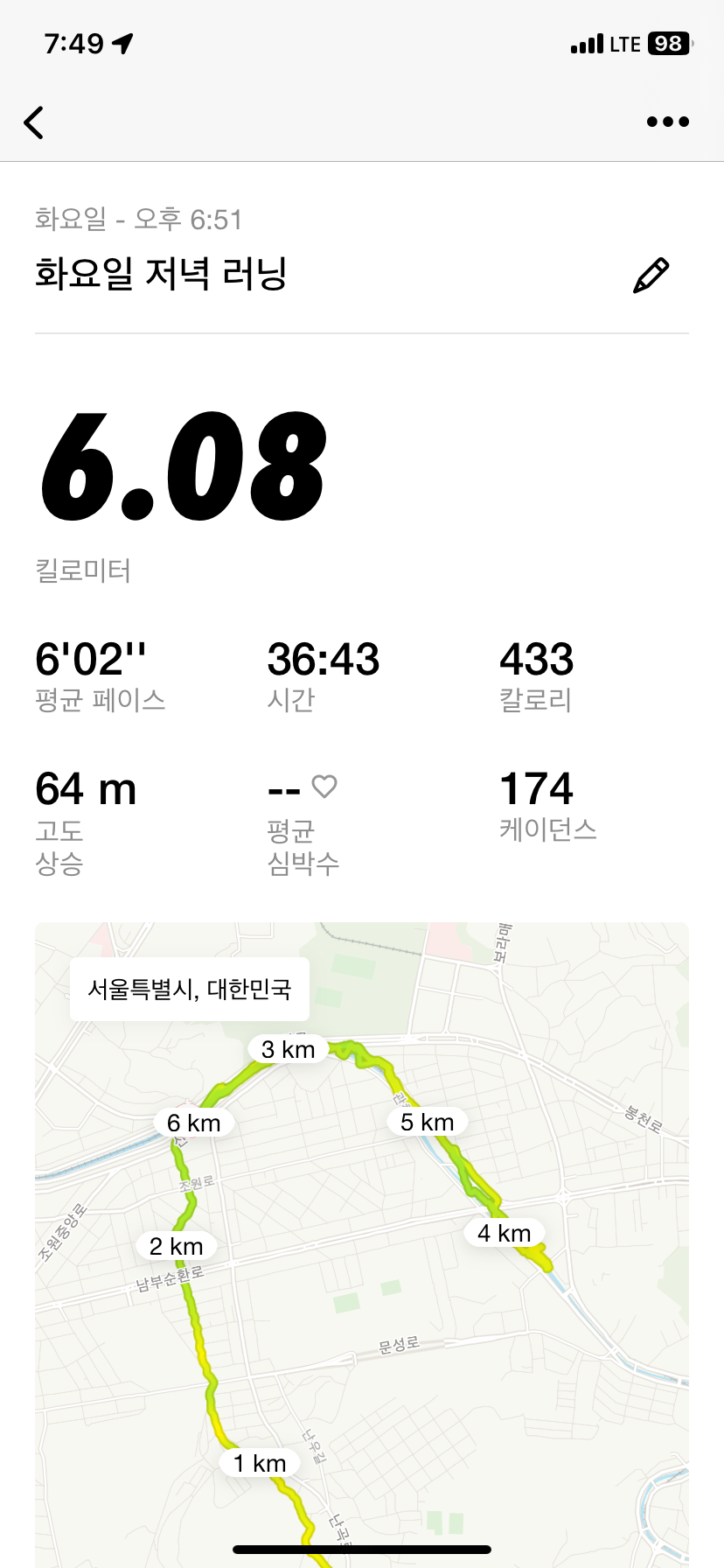 아 일단 어제 저녁 런닝 기록 인증 먼저 하고 시작할게요~~