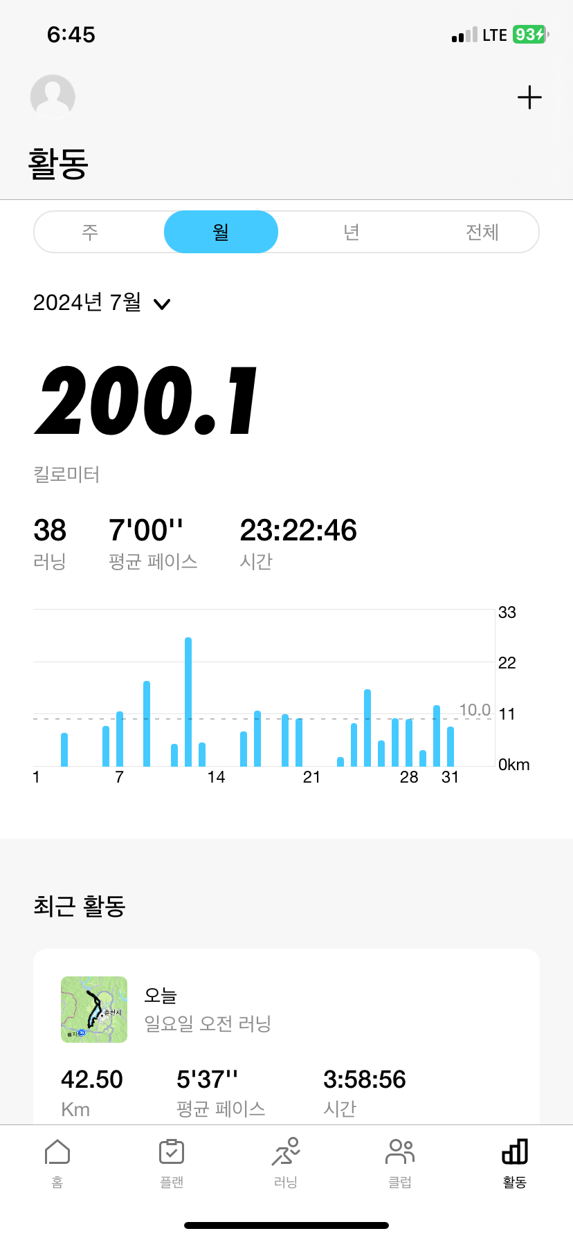 무더운 여름 너무나 더웠던 7월부터 매월 200km 뛰는거를 목표로 잡고 중간 중간