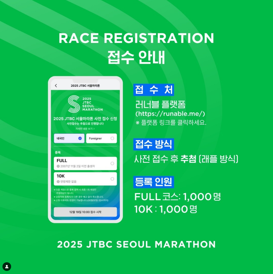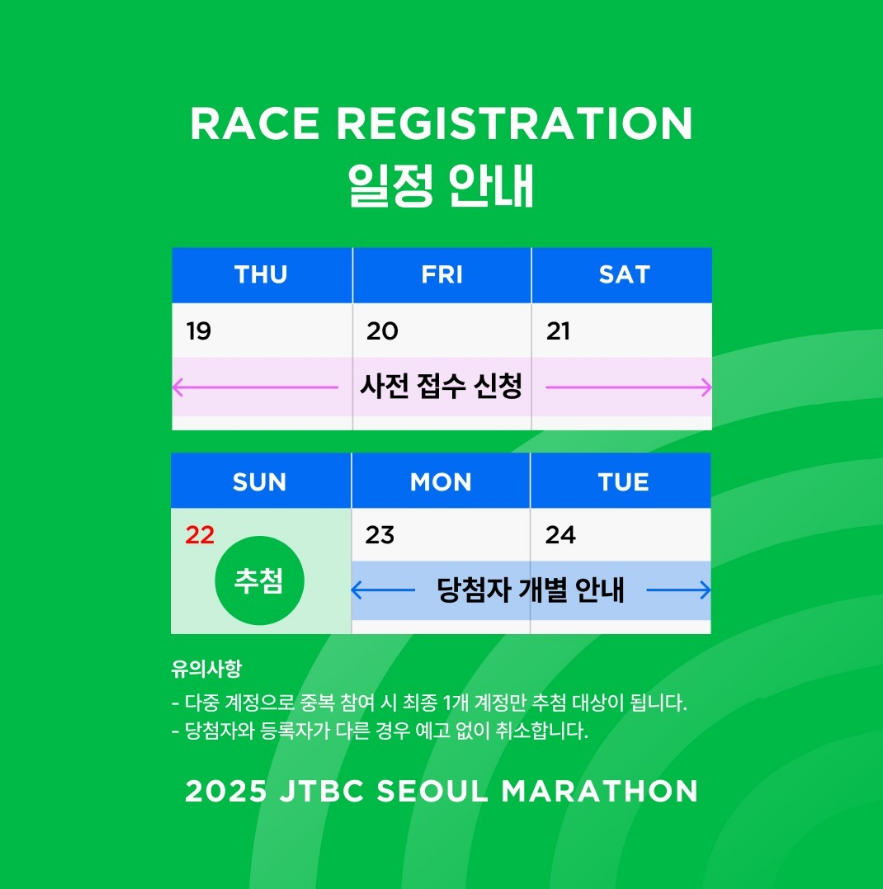 지금까지 2025 JTBC 서울마라톤 대회정보 및 얼리버드 접수에 대해서 알려드렸는데요 이번 참가방식은 추첨식이니