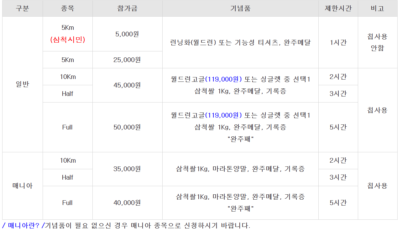 * 매니아 및 기타 참가부문은 아래 사진 참고