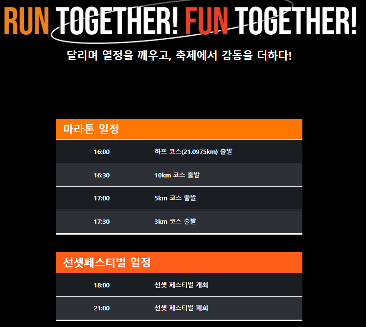 | 목차 ● 대회정보 ● 접수일정 ● 코스안내(+기념품) ● 선셋 페스티벌 정보 |